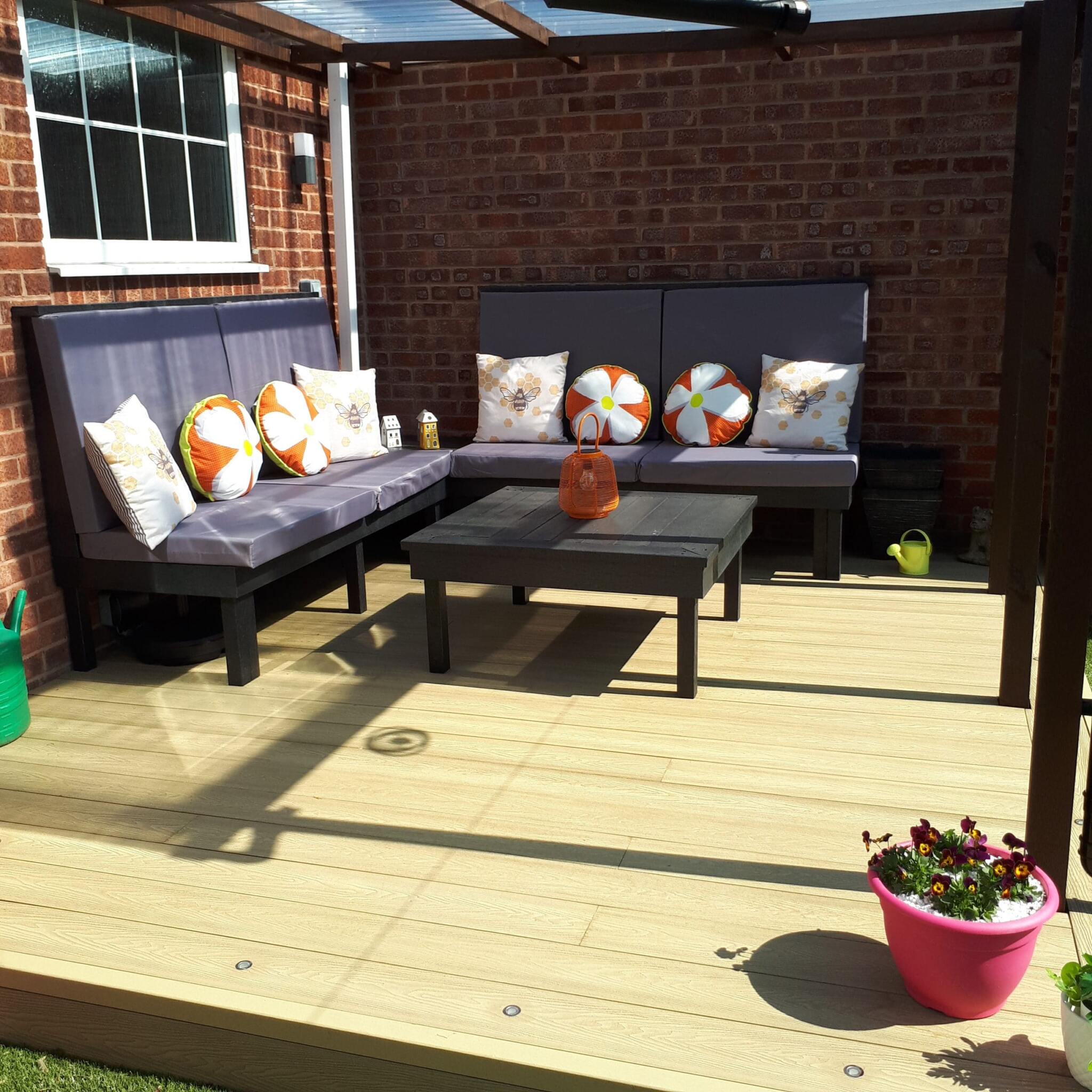 We were really pleased with the finished look and feel of the finished corner sofa. The accompanying table just finished it off. I would definitely use recycled plastic again.